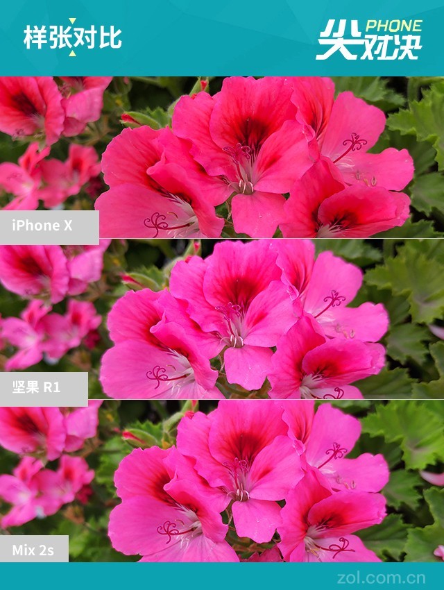 堅果R1、小米MIX2S、iPhone X拍照樣張對比