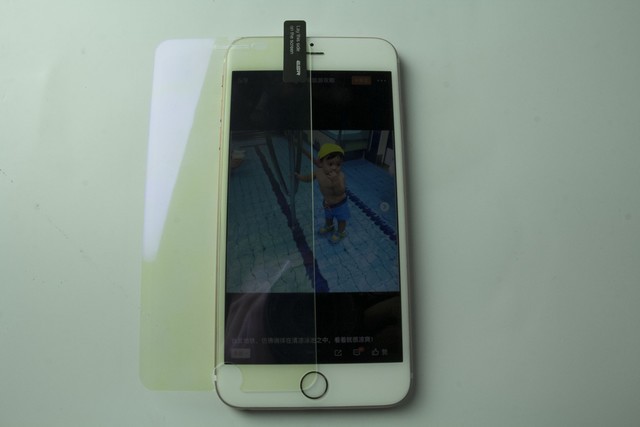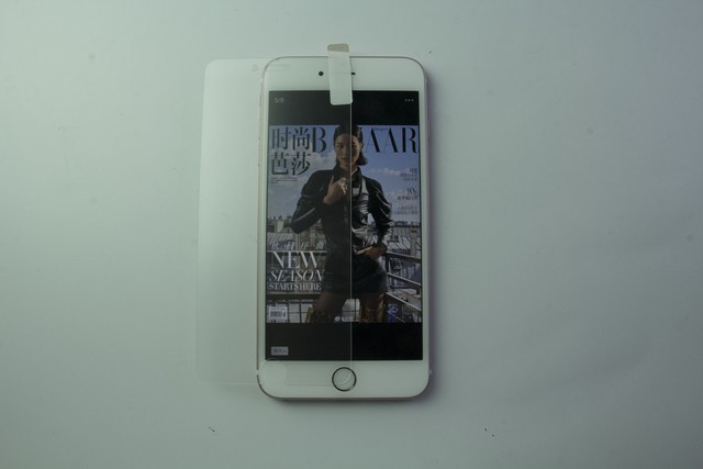 相比最左和最右兩款手機膜發黃的現象,高清鋼化膜的表現非常好,測試結果顯示貼在手機上發現,基本分辨不出有貼膜。
