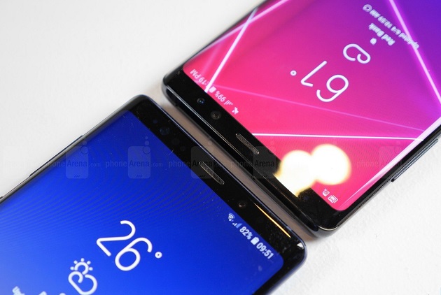 相比Note8,三星Note9正面進(jìn)行了一些細(xì)節(jié)調(diào)整,比如屏幕尺寸大了0.1英寸、處理了一些機(jī)身開孔、額頭消隱了虹膜相機(jī)、下巴有所收窄,屏占比略有提升;