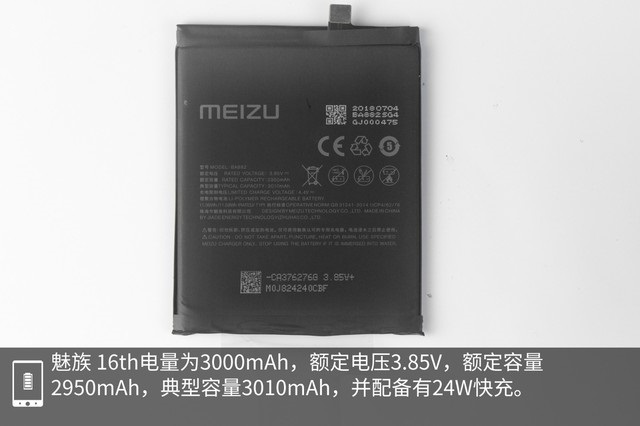 魅族16的電池容量為3000mAh,額定電壓3.85V,并配備24W高效快充。電池容量在同級別大小屏幕手機中,略微顯得偏小一些。