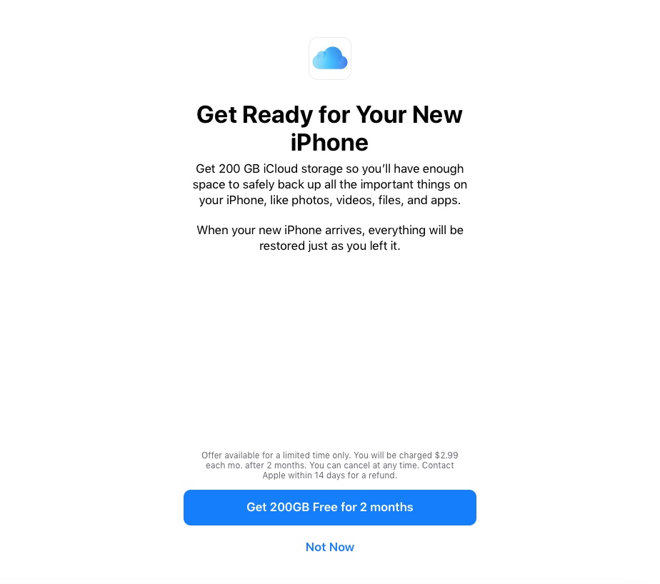 蘋(píng)果為用戶免費(fèi)送200GB云存儲(chǔ):兩個(gè)月后要付費(fèi)