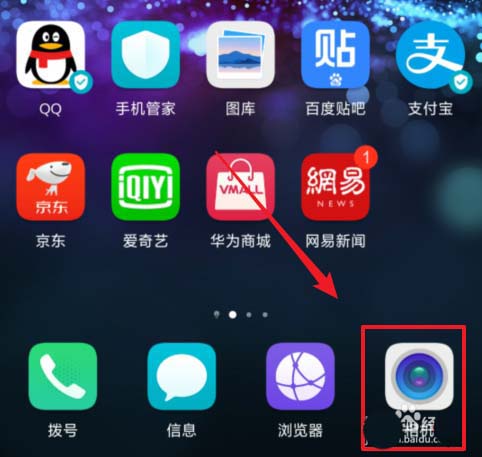 1、我們打開自己的榮耀V10手機(jī)進(jìn)入手機(jī)系統(tǒng),點(diǎn)擊下方的“相機(jī)”圖標(biāo)進(jìn)入。