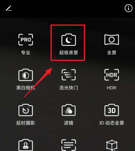 3、在更多中,可以看到很多實(shí)用的功能。我們選擇“超級(jí)夜景”的圖標(biāo)進(jìn)入。