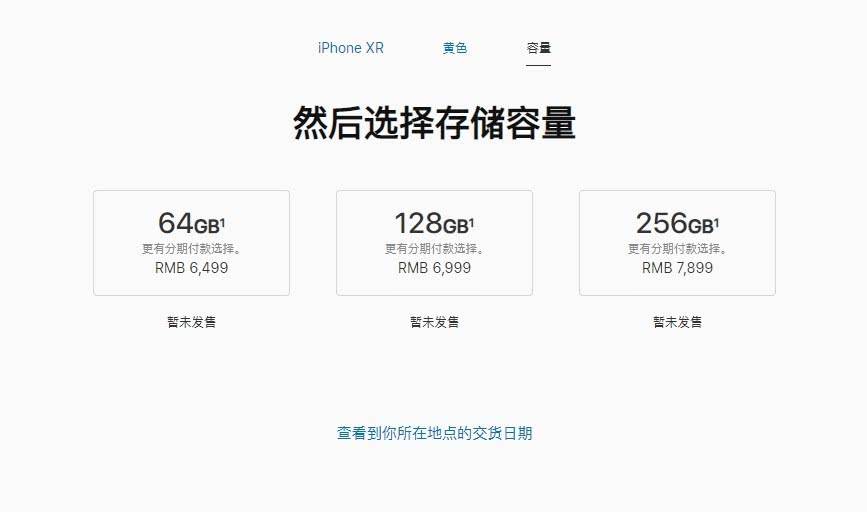 iPhone XR屬于最便宜的一個版本,提供三個版本可選,國行版具體售價如下: