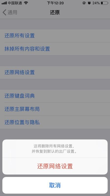操作方法:進(jìn)入iPhone XS/XS MAX的 設(shè)置 -> 通用-> 還原 ,然后選擇“還原網(wǎng)絡(luò)”,之后輸入一次解鎖密碼,選擇“還原網(wǎng)絡(luò)設(shè)置”即可,如下圖所示。