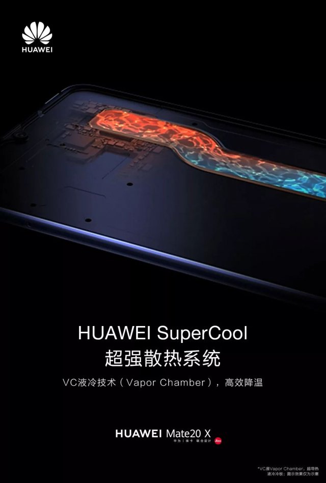 HUAWEI Mate 20 X采取了一種二維導熱方式——VC(Vapor Chamber),在穩定傳熱條件下,VC比熱管傳遞的熱量高兩倍多。