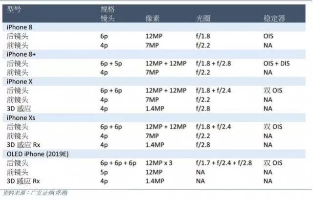 除此之外,廣發證券(香港)還根據自家的調研在報告中披露,明年推出的新款iPhone前置攝像頭方面也將致力于提升照片質量(自拍),預計將會現在的4片鏡頭7MP攝像頭升級為五片鏡組的12MP前置攝像頭。