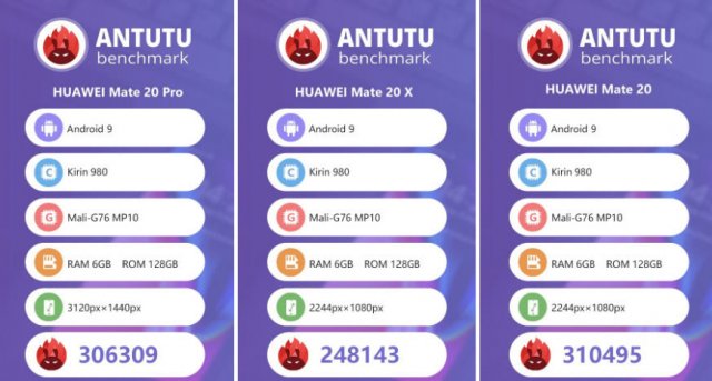 就在發布會舉行的過程之中安兔兔正式放出了華為Mate 20系列三款機型的平均得分,安兔兔稱這些數據收集應該是來源于媒體測試機和線下實體體驗機。有很多應該是網友自己去測試跑出來的,大家請看一下:華為Mate 20 Pro目前平均得分為306309,華為Mate 20平均得分為310495,華為Mate 20 X平均得分為248143。注意這些得分都是來自于6+128G這一個版本,這說明目前備貨量最大的應該是這個版本。