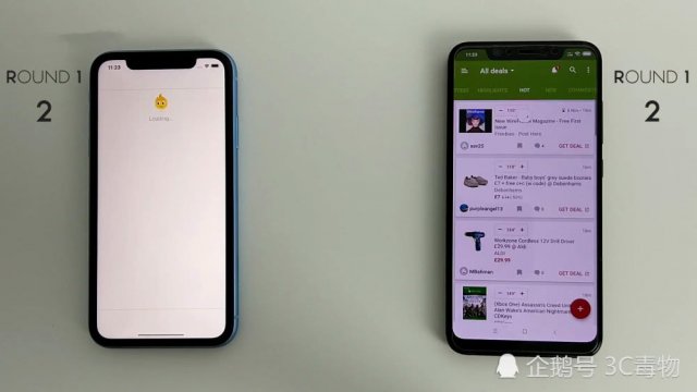 在前四款軟件分別是《相機》、《谷歌瀏覽器》、《ebay》、《hotdeal》,小米8的表面比較強勁,雖然配備的處理器是驍龍845,但是在軟件的打開速度上仍然是毫不含糊,絲毫沒有讓iPhoneXR占到任何便宜。