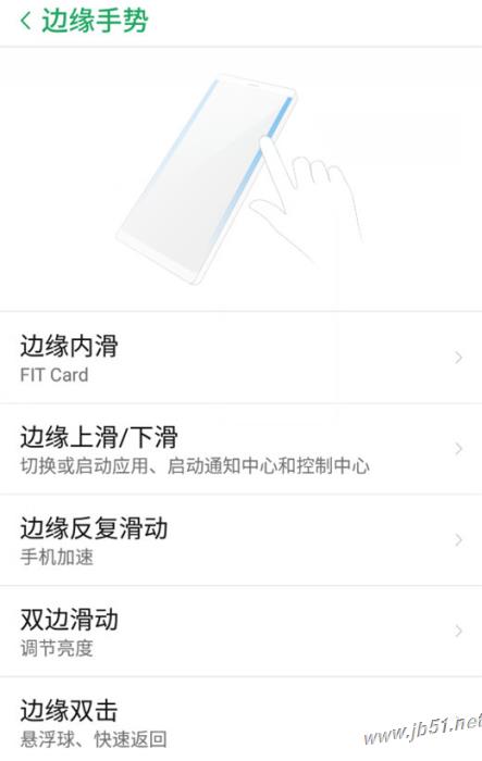 第三步:在邊緣手勢設置界面,可以設置各種手勢操作,選擇自己需要設置的邊緣手勢,點擊設置即可。