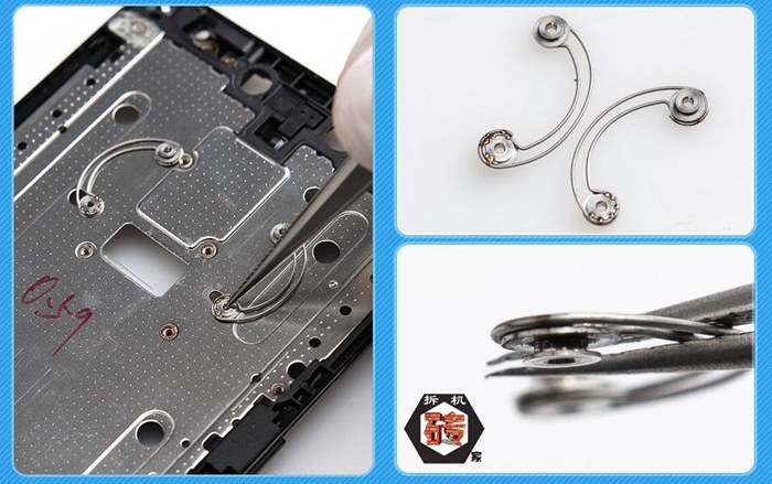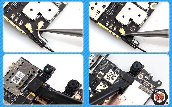 分離主板的兩條射頻天線,繼續拆解前置雙攝像頭。