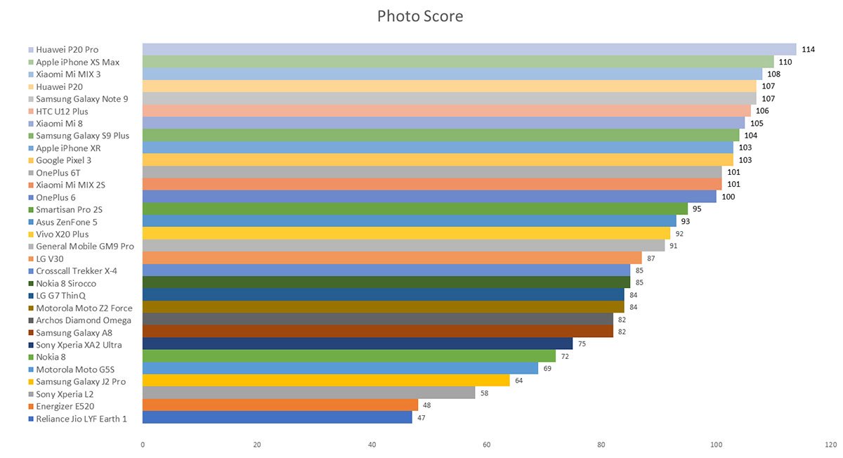 根據(jù)Dxomark發(fā)布的2018年手機(jī)拍照性能排行榜的整體得分榜單顯示:排在第一的依舊是去年3月份發(fā)布的華為P20 Pro以109分的成績(jī)霸占著首榜一年多的時(shí)間。而iPhone XS Max以105分緊跟其后,htc U12 Plus這是103分排在第三位,三星Note9則是第四位,小米MIX3緊跟其后在第五位。