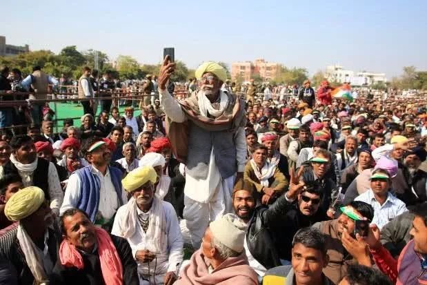 上周,一位農民在印度齋浦爾的一次集會上自拍。