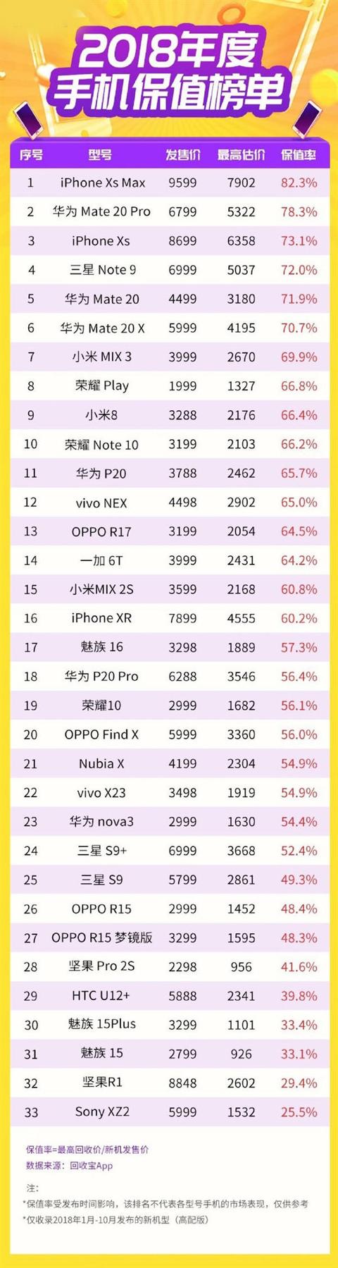 2018年智能手機保值率排行榜單出爐:前十名華為豪攬五席(2)