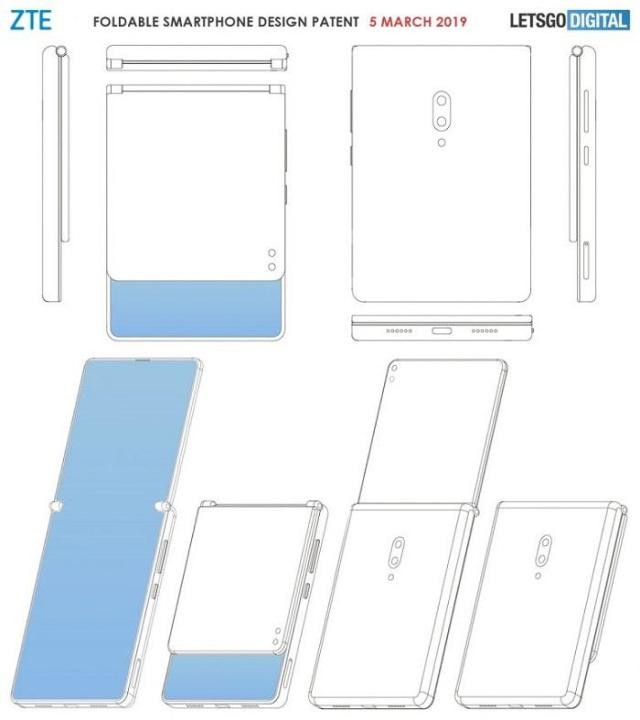 去年晚些時候,中興申請了平板式的折疊屏手機專利。而 LetsGoDigital 最新爆料的這款,采用了翻蓋式的設計。