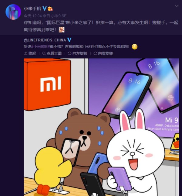 4月1日上午,小米公司和LINE FRIENDS正式合作,推出布朗熊小米9 SE限量版,簡直萌的不行。