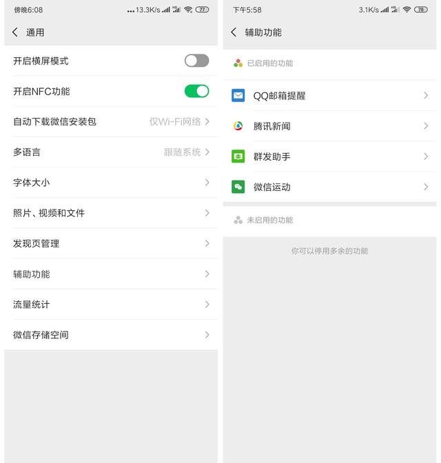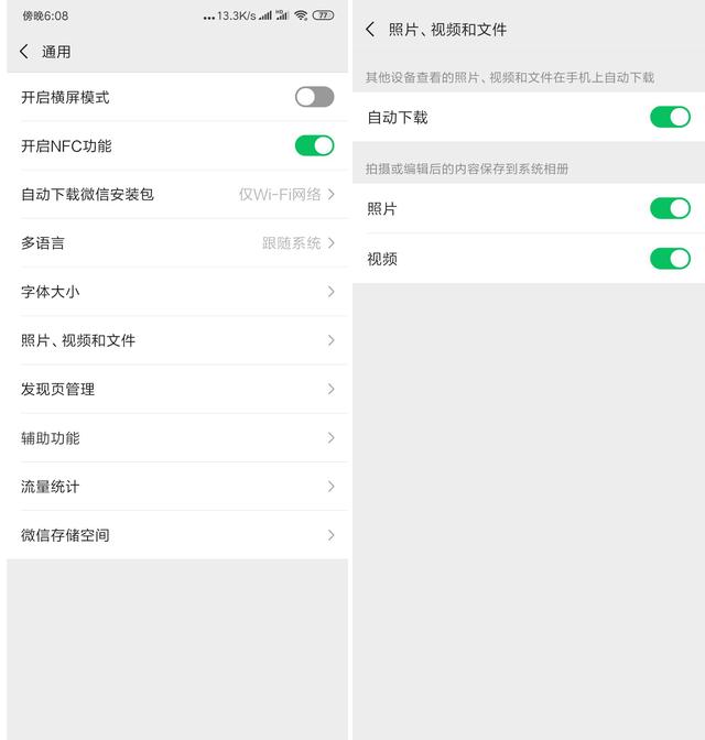 此項(xiàng)功能會(huì)將我們所看到的圖片或者視頻直接下載到微信文件里。這項(xiàng)功能可以通過"設(shè)置—通用—照片、視頻和文件"關(guān)閉。對(duì)那些沒興趣卻常推圖文的公眾號(hào),可以直接取關(guān)。