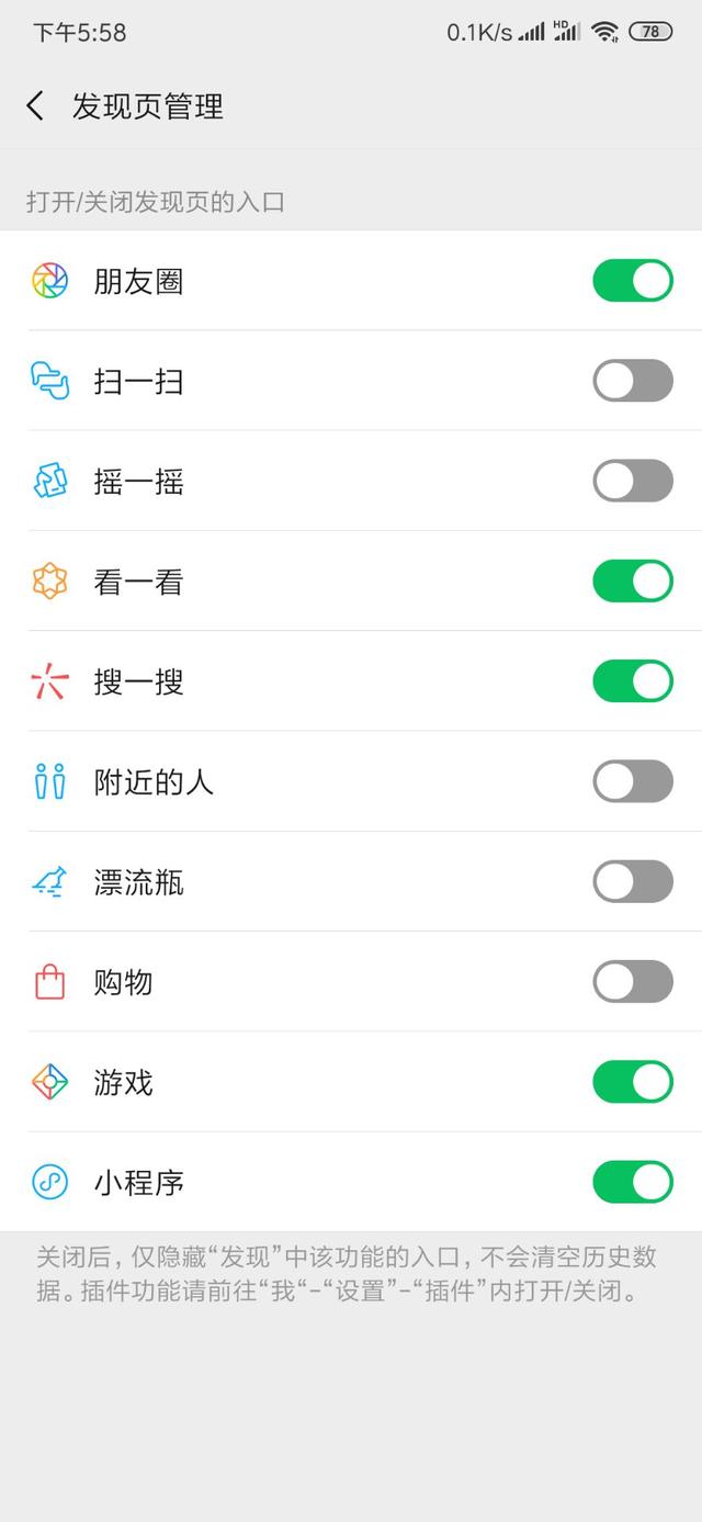 這項(xiàng)輔助功能需要打開定位,向其他用戶信息發(fā)送信息,也接受其信息,所以這項(xiàng)功能非常占空間,在"發(fā)現(xiàn)頁管理"選項(xiàng)中直接選擇停用。