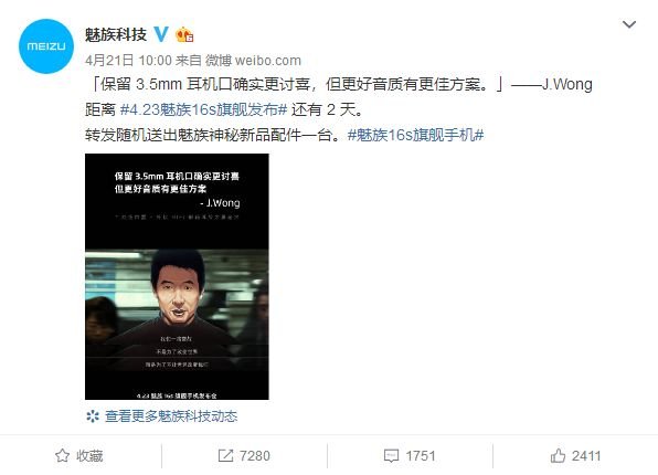 經(jīng)過了漫長的等待,苦心期盼的魅友們上周終于等來了官方發(fā)來的好消息。據(jù)魅族科技官方表示,魅族新旗艦16s將會在4月23日(今天)在珠海發(fā)布。現(xiàn)在魅族官方又放出了最新預(yù)熱消息:該機(jī)的的3.5mm耳機(jī)孔已確認(rèn)要取消了。