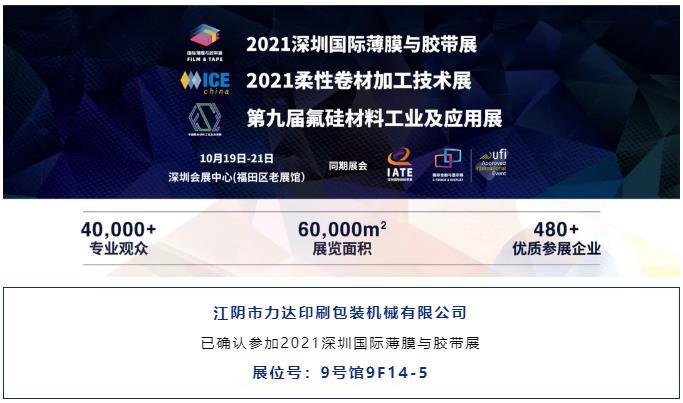 10月19-21日,2021深圳國際薄膜與膠帶展將在深圳會展中心(福田區(qū)老展館)舉辦,