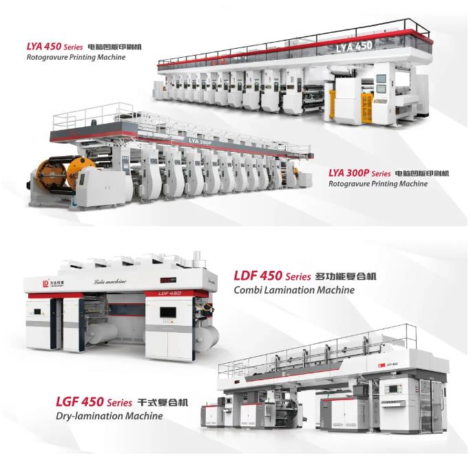 其中,公司最新研發(fā)的LDF450型多功能復(fù)合機以及LGF450型干式復(fù)合機受到了很多新老客戶的關(guān)注,該機型最高機械速度為450m/min,支持無溶劑/網(wǎng)線輥/半柔版/定點涂布等多種涂布方式任意切換,實現(xiàn)一機多用,可以為客戶節(jié)約更多的成本,實現(xiàn)更高的經(jīng)濟效益。