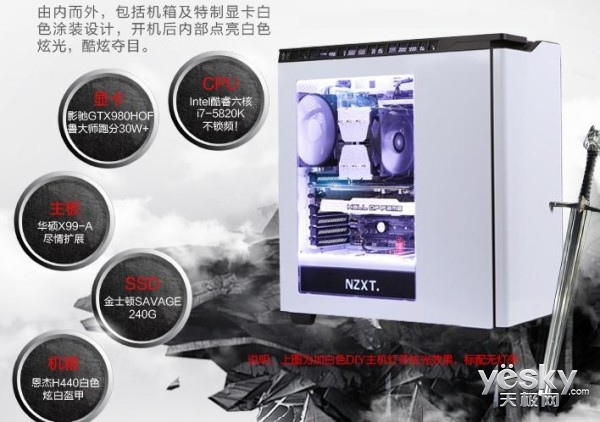 雷霆世紀The One采用恩杰H440 白色游戲機箱,圣潔白色涂裝由內而外,包括機箱及特制顯卡,開機后內部白色炫光自動點亮,酷炫奪目;機箱線條干凈利落,氣場全開;純鋼無門無光驅面板,大面積側透及優雅的走線設計,簡潔科學的理線空間,內部部件一覽無余,時尚高品;前后風道多對流布局,多風扇高效散熱系統,給游戲發燒友極盡精致的PC構造體驗,盡情彰顯強悍軀體的鋒銳之美。該機在京東的熱賣價格為8888元,感興趣的朋友可以關注一下。