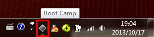 安裝好了之后,你的右下角MAC系統里面熟悉的BOOT CAMP,出現了。如下圖:
