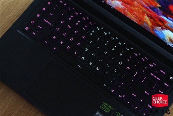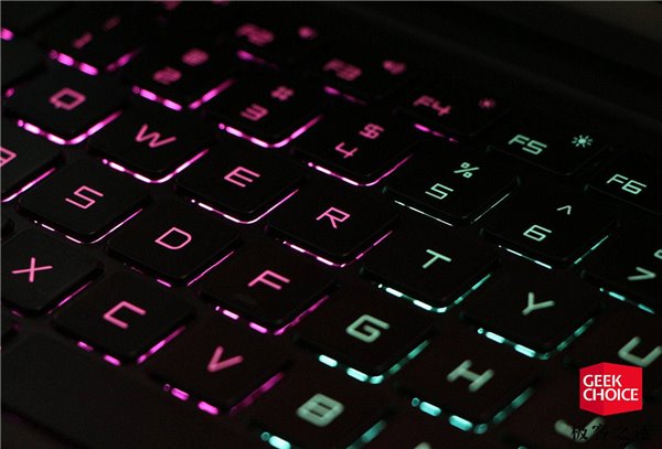 當然,作為一款游戲本,炫彩的燈光效果也是少不了的。小米游戲本的燈效由兩部分組成,一部分是C面的鍵盤區,另外一部分是機身兩側的燈帶。其中鍵盤部分,左側的五個可編程功能鍵為一個分區,主鍵盤區組成另外三個分區。