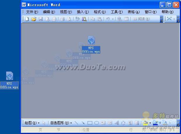 直接拖動wps格式的文件到MS Office的編輯區(qū)域(此時要先關(guān)閉所有文檔,以免將WPS文檔當(dāng)作OLE對象插入到原有文檔中了),MS Office就可以將其打開了,如下圖所示: