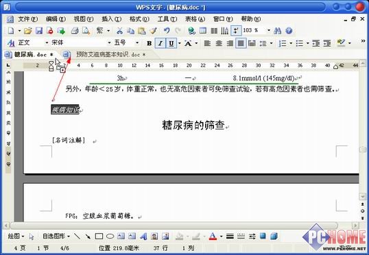 另外,同樣的內(nèi)容可能出現(xiàn)在兩個文檔中,比如小標(biāo)題等,這里只要在樣本文檔中選中需要“克隆”的文字,并將其拖曳到文檔標(biāo)簽上,WPS 2007會自動切換到目標(biāo)文檔,最后松開鼠標(biāo)左鍵即可完成連文字帶格式的復(fù)制(如圖3),非常方便。