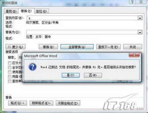 對于嵌入式的圖片,無論是Word 2007或是Word 2003,都可以直接打開“查找和替換”對話框,先將“查找內(nèi)容”設(shè)置為“^g”,然后將光標(biāo)定位到“替換”的文本框中,首先單擊“更多”按鈕,此時可以看到搜索選項、格式、特殊格式等內(nèi)容,從格式的下拉菜單中選擇“圖文框”,將水平位置設(shè)置為居中,然后返回“查找和替換”對話框,單擊“全部替換”按鈕后即可生效(見圖2)。