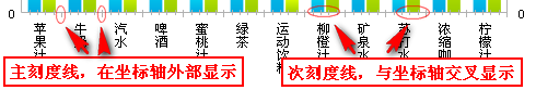 默認只顯示主刻度線,用于分割每個分類值,用戶可以根據需要設置是否顯示刻度線,也可以在主要刻度的基礎上再顯示次要刻度線。如下圖: