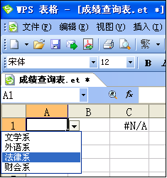1.在單元格A1單擊,從下拉列表中選擇“法律系”,見圖C所示;