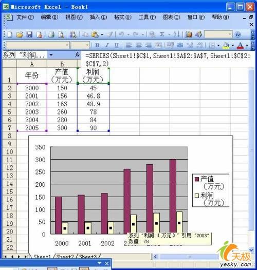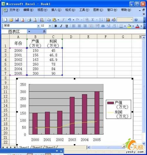 3、在圖表的“繪圖區”中,用鼠標單擊某個序列的圖表(如“利潤”,參見圖2)。