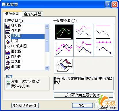 4、右擊鼠標,在隨后彈出的快捷菜單中,執行“圖表類型”選項,打開“圖表類型”對話框(如圖3)。