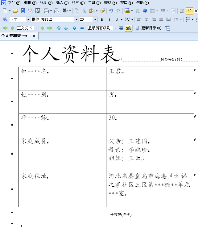在日常使用“wps文字”設計與制作左右不對稱的錯行表格的過程中,經常會遇到表頭對應的文字填寫內容存在“分布不平衡”的情況,這時比較常用的方法是采取“增加列寬或行高、合并單元格”等簡單的操作來解決這個問題,可依此法制作出來的表格,常常是既費時、又不能做到美觀大方。其實,只要正確理解“分節”的概念,并巧妙運用 “插入分節符”、“分欄”等技巧的有序操作,制作左右錯行表格其實很簡單。具體方法如下: