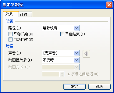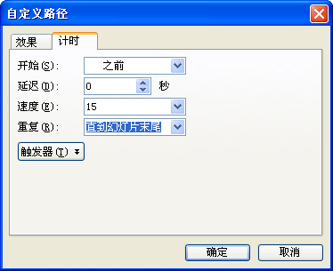 6、雙擊“自定義動畫”窗格里與“丹丹”對應的動畫選項,在彈出的對話框里進行如圖14、15的相關設置后,為幻燈片添加其他對象并合理添加動畫,即可實現預設效果。