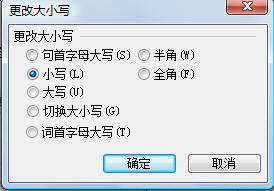 ”圖標,彈出“更改大小寫”對話框,選擇“小寫”完成第一步。