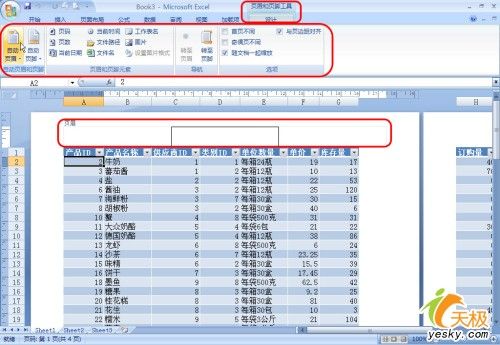 插入頁(yè)眉和頁(yè)腳在Excel2007中的“頁(yè)面”視圖中,直接插入和設(shè)置,方便直觀。以前版本中關(guān)于插入頁(yè)眉和頁(yè)腳的對(duì)話框上的命令都放在菜單標(biāo)簽欄上了,無(wú)需先在對(duì)話框中設(shè)置,然后再去點(diǎn)“確定”了,省了很多步驟,且直觀。在這要提示一下,第一次用切換進(jìn)“頁(yè)面”視圖的方法時(shí)可能并不顯示插入頁(yè)眉和頁(yè)腳的菜單標(biāo)簽欄,單擊菜單標(biāo)簽欄上的“頁(yè)眉和頁(yè)腳工具”或“設(shè)計(jì)”就可了。圖3所示的就是插入頁(yè)眉和頁(yè)腳時(shí)的“頁(yè)面”視圖。
