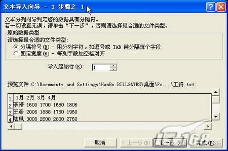 下面我們以文本文件為例來(lái)介紹如何使用Excel的數(shù)據(jù)導(dǎo)入功能。假設(shè)我們有一個(gè)存放工資的文本文件,其內(nèi)容如圖1所示: