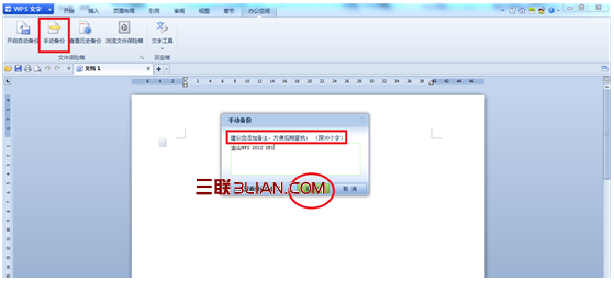在“手動備份”這個選項里則有一個很特別的功能,當(dāng)你編輯資料到一定程度,覺得有必要保存時就可以點擊這個選項,而且點擊后彈出的對話框里可以輸入你需要的對這個文檔的備注。