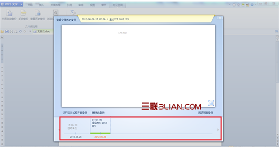 點擊“查看歷史備份”后則是跳出一個頁面,在頁面下面有一個時間軸,里面記錄了不同時間保存的文檔,而且可以刪除或者打開這個備份。