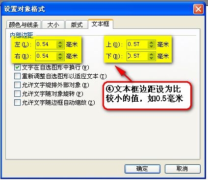 2、設置圖形屬性及文本框邊距。