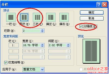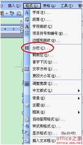 選中內(nèi)容,單擊菜單"格式----分欄"