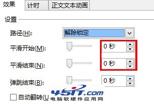對于3個路徑動畫,注意(1)平滑開始平滑結束均設置為0,(2)第2個路徑較短,但時間反而長些,這就造成變速上升了,(3)時間設置上,利用“延遲”設置來使三個路徑逐一運行,因為下面的陀螺旋動畫要橫跨三個路徑的時間,所以不能用“上一動畫之后”