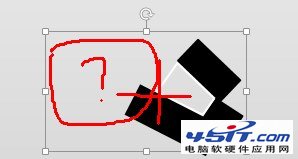 (一)將1號2號重疊放置(選中兩者,利用對齊中的“上下居中”和“左右居中”),3號的曲邊恰好遮住文字(矩形有一定傾角),如下圖(為方便觀看,將黑色設置了透明度)