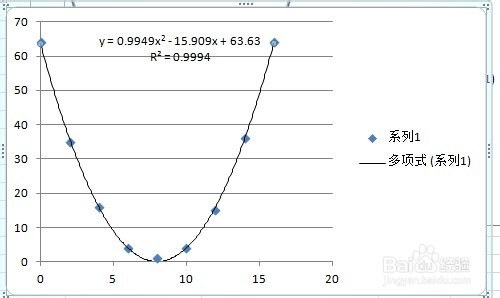 在這里可以選擇需要你和的曲線類型,如線性,指數(shù),冪,對數(shù),多項(xiàng)式。。選擇多項(xiàng)式。
