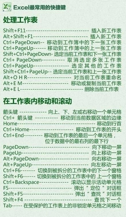 2、Excel處理工作表+在工作表內移動和滾動快捷鍵