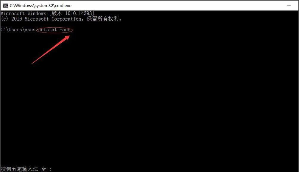 2、在光標(biāo)區(qū)域輸入“netstat -ano”,按下回車鍵;