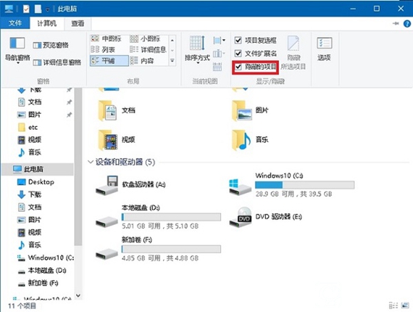 1.進(jìn)入“此電腦”,點(diǎn)擊窗口上面的“查看”,把“隱藏的項目”勾上;
